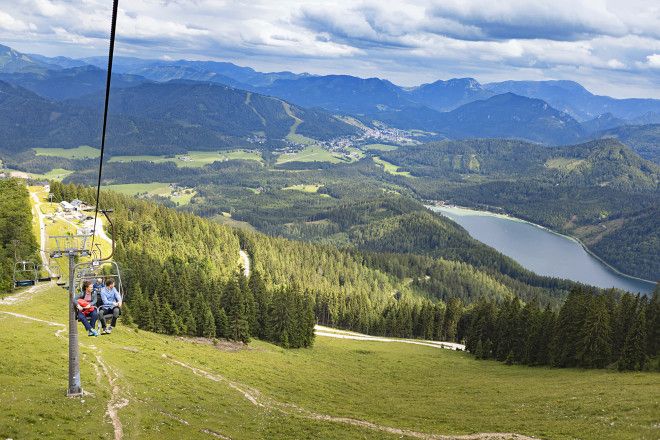 Mit dem Sessellift geht es nun über die Anna-Alm auf das Bergplateau hinauf. Idyllischer hätte es nicht sein können. Während Kuhglocken bimmeln und Fohlen unter unseren Beinen hinweg galoppieren, gleitet auch noch ein Vogelschwarm über uns hinweg. Die Lungen saugen die frische Waldluft auf, während wir durch den schattigen Abschnitt hinauffahren. Ein greller Schrei durchschneidet die Stille und wir müssen lachen, denn die nächste Partie saust an uns vorbei.